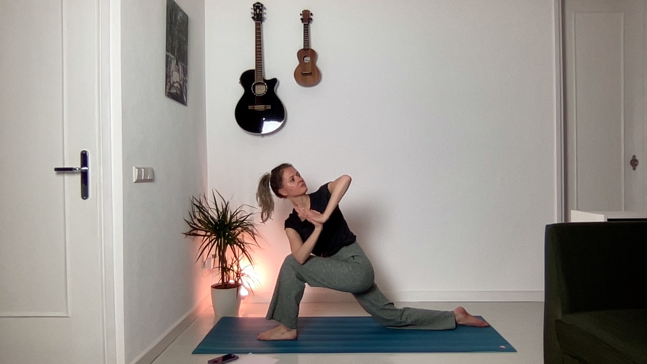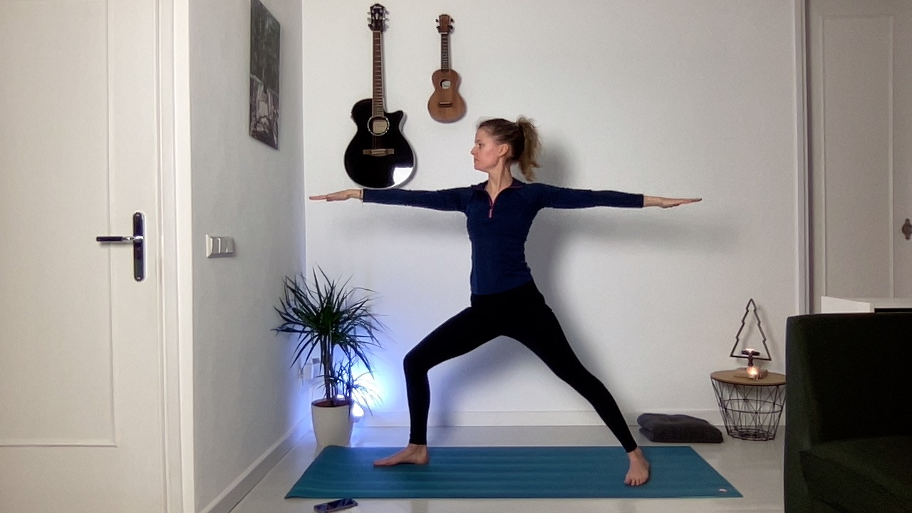 Een fijne les waarbij we eerst onze warming up doen en daarna gaan "flowen". De Krijgershouding 1 en 2 komen langs en we versterken onze benen met de Stoelhouding. Kortom, een volledige en leuke les. Veel plezier!...